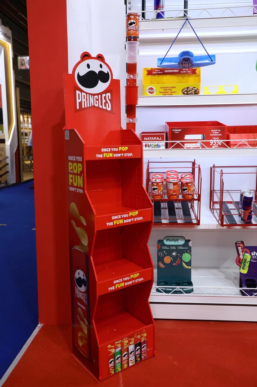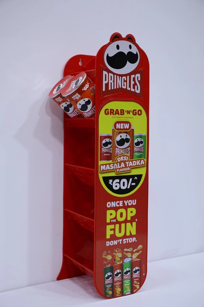 A standalone display unit designed to grab attention and showcase products in retail spaces.